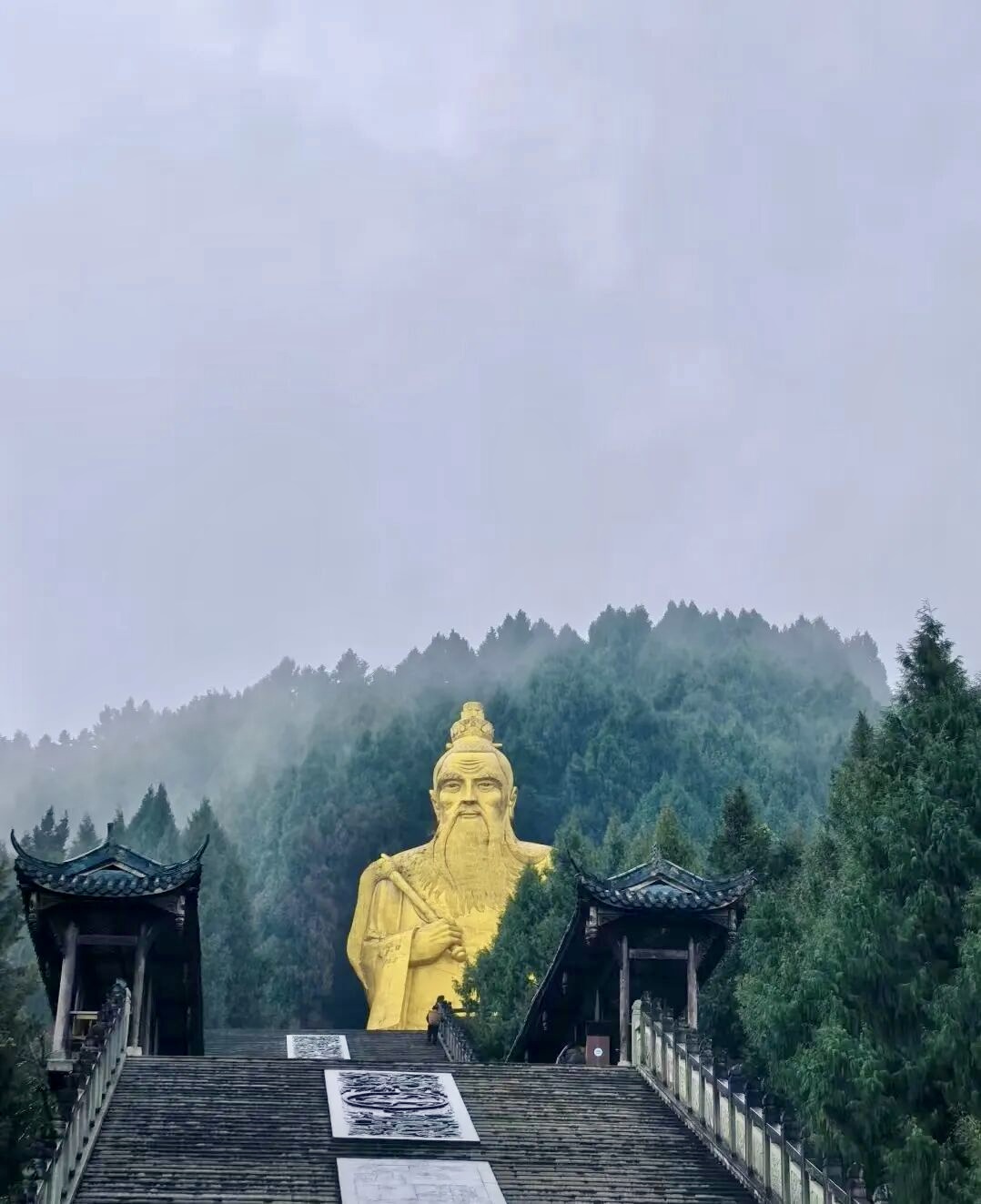 但不管是“凤”还是“峰”,这座位于蓬溪、射洪、西充三县交界处,海拔547米的山,确实有两样“第一”:国内身量最高的老子石像,与八卦迷宫古建筑,藏着川北独有的人文奇景与自然灵秀。