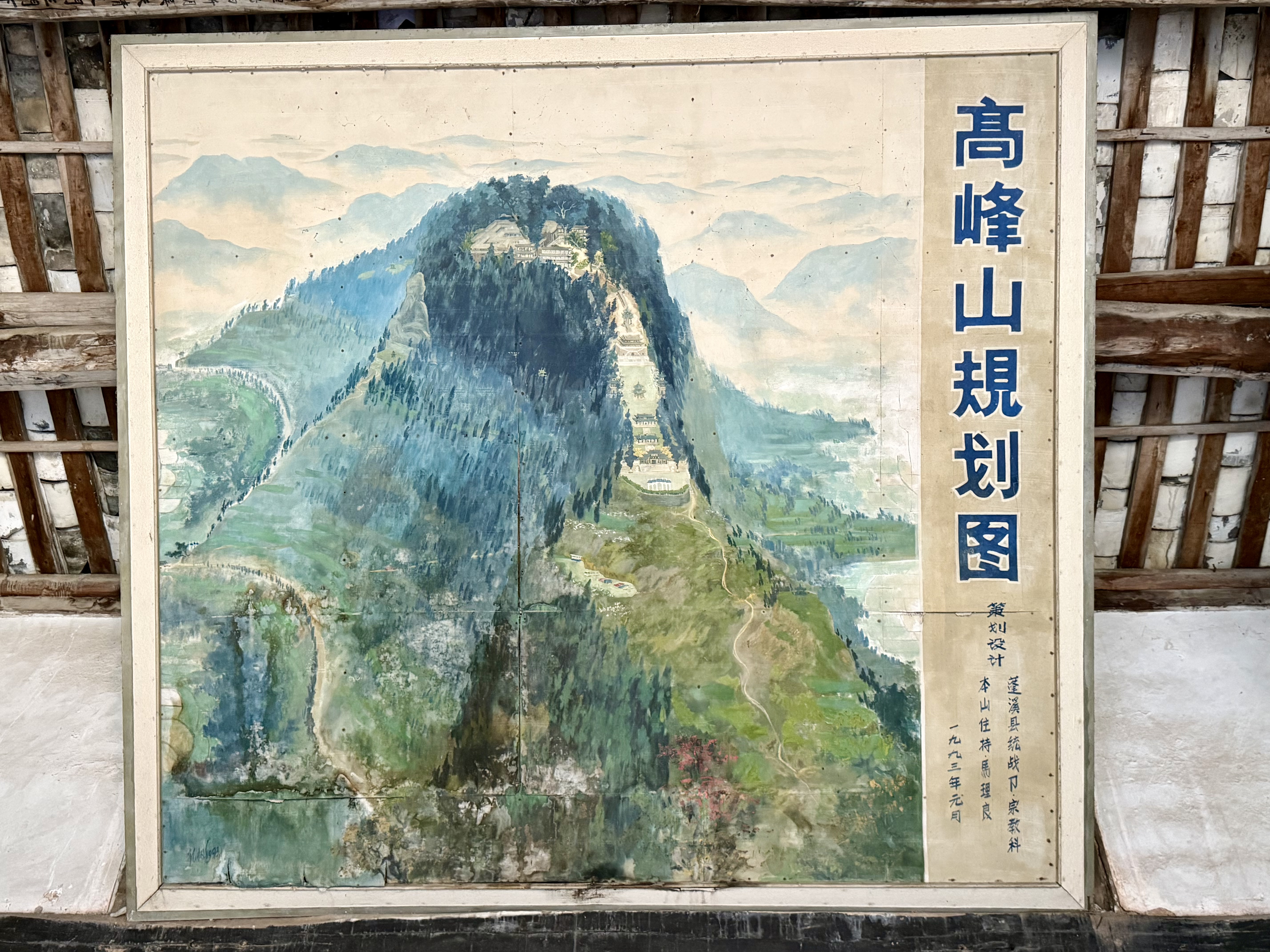这些来处,在《蓬溪县志》也有印证:自唐伊始,高峰山开始大兴土木。受朝代更迭、战乱频发等因素影响,历时1300余年的旧时建筑,一度在清朝末年近乎荒废。好在,当地乡民慷慨捐资,为世人留下了一片气势恢宏的木质建筑群落。