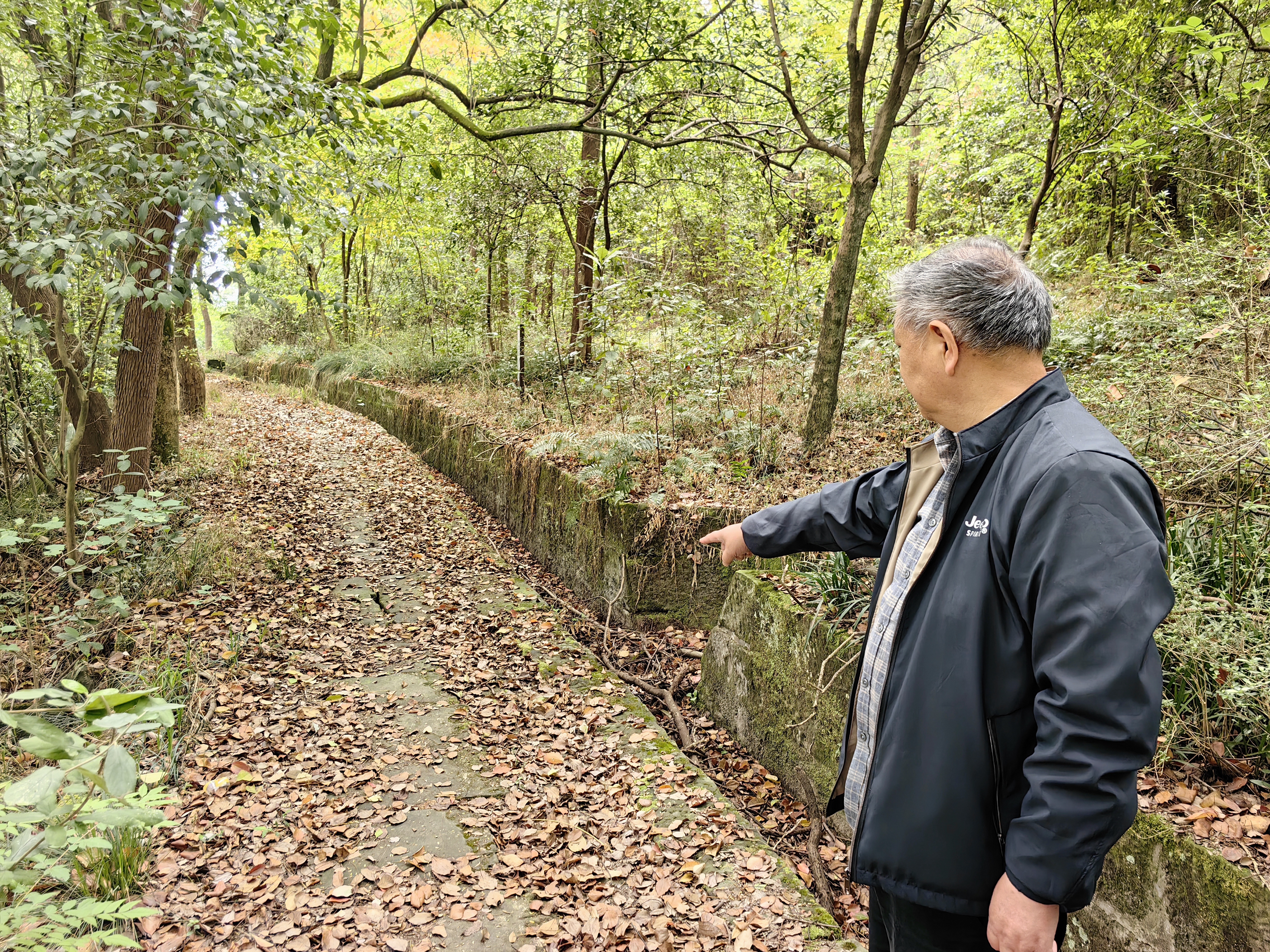 田世华指着藏在三元山里的古驿道(摄影 黄晓庆)