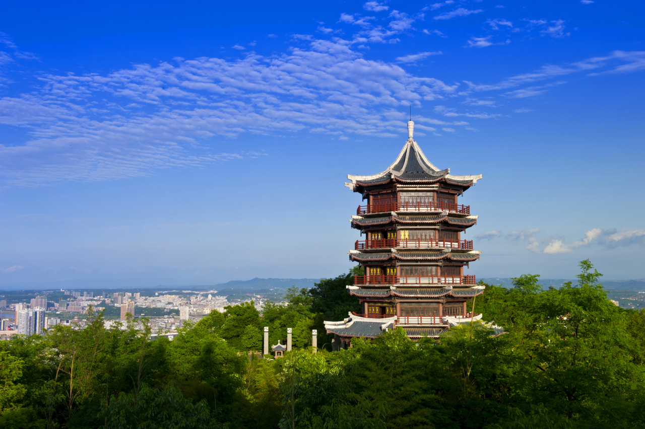 栖乐山在最西边,林木最密。山上有栖乐寺,唐代始建,是川东北的佛教圣地;有金泉山,传为女道士谢自然飞升处,韩愈有诗记其事;还有顺泸起义的遗址,1926年刘伯承在此设指挥部,打响巴蜀革命的第一枪。